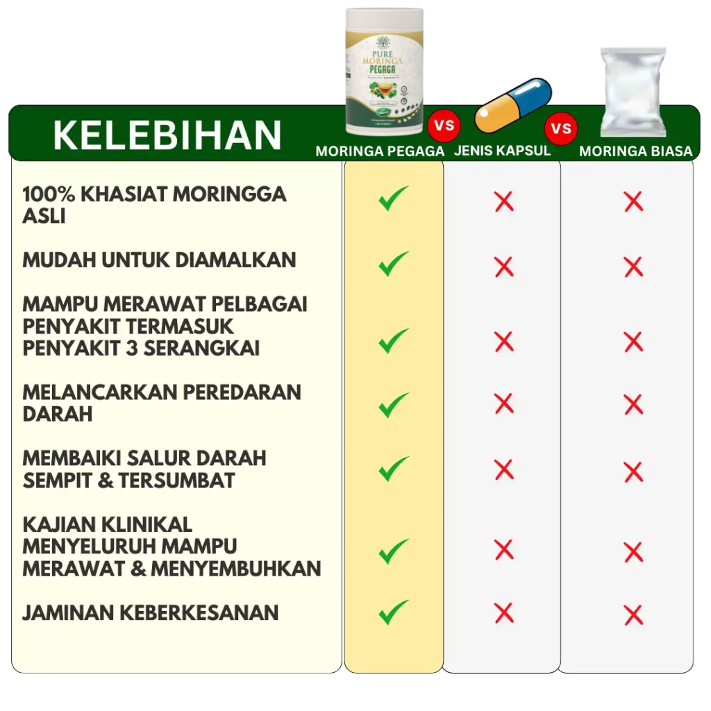 Penafian : Teh Moringa Pegaga adalah minuman tambahan bukan pengganti rawatan perubatan